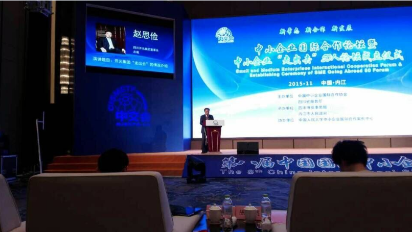 在“大眾創(chuàng)業(yè)、萬眾創(chuàng)新”的背景下,中小企業(yè)發(fā)展既面臨著重重困難,又將迎來前所未有的機遇和挑戰(zhàn),為給省內(nèi)中小企業(yè)提供更多轉(zhuǎn)型升級以及應(yīng)對實事變幻的交流平臺和契機,11月5日,由內(nèi)江市政府主辦的第八屆中國國際中小企業(yè)交易會順利召開。在“中小企業(yè)50人論壇”成立啟動儀式上,集團董事長代表“走出去”企業(yè)發(fā)表重要講話。
