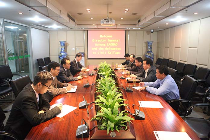 趙董事長(zhǎng)首先對(duì)Achong Laomao局長(zhǎng)的來(lái)訪表示了熱烈的歡迎。長(zhǎng)期以來(lái),集團(tuán)老撾鉀鹽項(xiàng)目獲得了老撾總理府及各級(jí)政府的大力支持,他深表感謝。接著趙董事長(zhǎng)向Achong Laomao局長(zhǎng)介紹了老撾項(xiàng)目目前的生產(chǎn)建設(shè)情況并觀看了宣傳片。Achong Laomao局長(zhǎng)對(duì)老撾項(xiàng)目取得的成績(jī)和發(fā)展情況贊不絕口。他說(shuō),開(kāi)元集團(tuán)老撾鉀鹽項(xiàng)目是中老兩國(guó)合作的典范工程,老撾投資總局必將大力支持,他回國(guó)后一定要到項(xiàng)目現(xiàn)場(chǎng)考察調(diào)研。