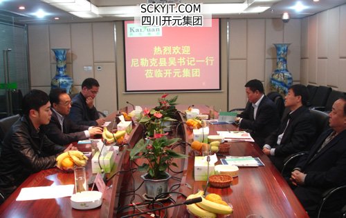 11月27日,新疆尼勒克縣縣委書記吳奉軍一行四人到集團(tuán)考察訪問。集團(tuán)董事長(zhǎng)、總裁趙思儉,總裁助理?xiàng)畲笃降扰c吳書記一行進(jìn)行了親切的溝通和交流。