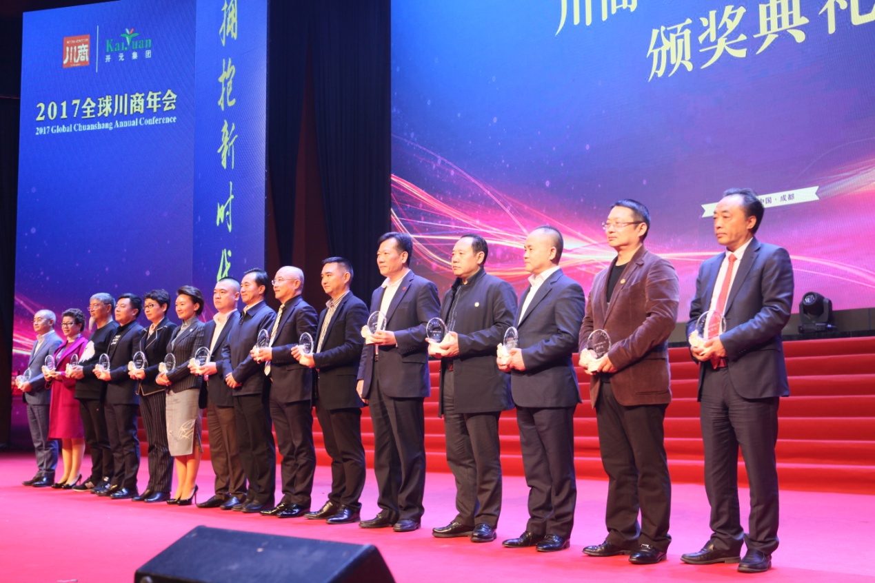 會議現(xiàn)場,令人矚目的“開元杯•2017(第六屆)四川杰出民營企業(yè)家頒獎典禮”隆重舉行,21位企業(yè)家分獲“2017四川杰出民營企業(yè)家年度人物”、“2017四川杰出民營企業(yè)家”、“2017杰出川商創(chuàng)新獎”三大獎項。作為“新常態(tài)”下大力推動四川經濟發(fā)展的四川民營企業(yè)家新標桿,積極探索,改革創(chuàng)新的開拓者,獲獎企業(yè)家一一登臺接受表彰,趙董事長作為首屆四川杰出民營企業(yè)家、冠名單位代表為獲得該項殊榮的優(yōu)秀川商頒發(fā)了獎狀和獎杯。