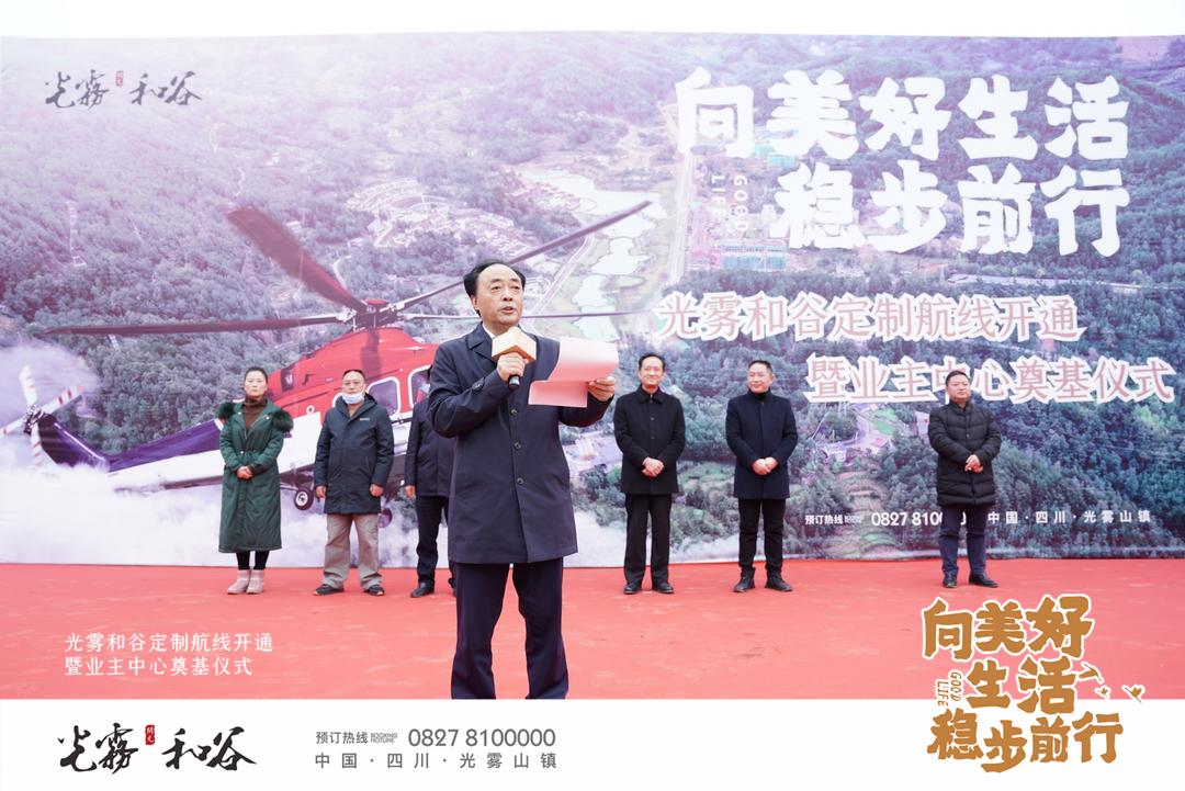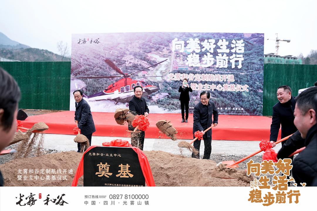 2021年1月2日,新年伊始,開元集團(tuán)在美麗的光霧和谷舉辦了直升機(jī)定制航線開通暨業(yè)主中心奠基儀式。光霧和谷項(xiàng)目公司和下屬施工單位的同事們精心準(zhǔn)備、嚴(yán)陣以待,熱烈歡迎各界嘉賓光臨。上午9時(shí),活動(dòng)正式開啟,南江當(dāng)?shù)卣嚓P(guān)領(lǐng)導(dǎo)、光霧和谷部分業(yè)主代表及光霧山鎮(zhèn)廣大群眾共數(shù)百人蒞臨活動(dòng)現(xiàn)場(chǎng),與工作人員一起共同見證光霧和谷項(xiàng)目邁入新的階段。