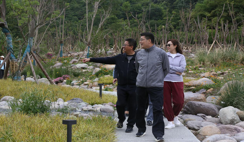參觀結(jié)束后,林主席表示,海花溝具備豐富的自然和人文旅游資源,可依托這些有利條件營造氛圍濃厚的文化旅游活動,項目目前的呈現(xiàn)情況非常不錯,景色景觀讓人流連忘返,很期待下次的到來能看到?;细赂玫陌l(fā)展。
