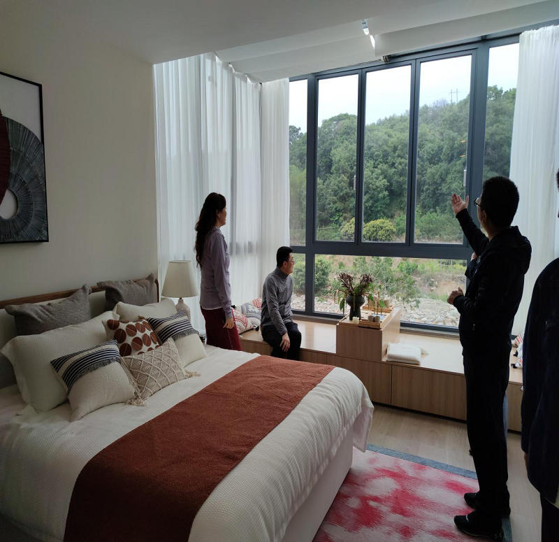 林主席一行饒有興致地參觀樣板房,并仔細(xì)了解房屋設(shè)計、布局等情況。