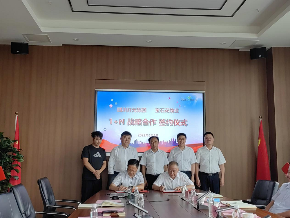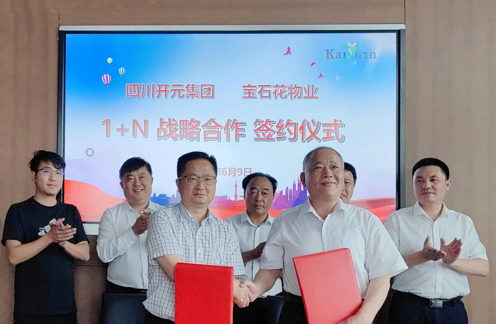 2022年6月9日,四川開(kāi)元集團(tuán)與寶石花物業(yè)公司在開(kāi)元集團(tuán)總部隆重舉行戰(zhàn)略合作簽約儀式,雙方正式開(kāi)啟“1個(gè)戰(zhàn)略協(xié)議+N個(gè)具體項(xiàng)目”全方位、深層次合作。