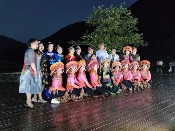 兵團老年大學(xué)趙海雲(yún)老師,精心編排的一組組新疆民歌,可愛的一朵玫瑰花,讓當(dāng)?shù)匾妥寰用耦I(lǐng)略到了大美的新疆,一段段由當(dāng)?shù)乩圩?,彝族居民編排的舞蹈、體驗穿傈僳服裝,拎火草,搓麻線,刺繡花包,編花布條……讓更多的新疆考察團成員大開眼界,倍感好奇。