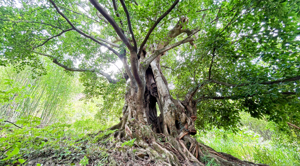古樹資源也是?;系囊淮筇厣?。項目范圍內(nèi)有近200棵數(shù)百上千年的古樹沿主要道路呈帶狀分布,專家一行參觀的是園區(qū)的“千手觀音子母樹”和“七星古樹”。子母樹為同根而生的雙生樹,母樹根系在十余米外再次萌芽,生長為子樹。二者根系相連、枝葉相接、風姿相似,因母樹枝干如手臂向四周伸展,神似千手觀音,故被當?shù)卮迕穹Q為“千手觀音子母樹”。“七星古樹”因生長方位分別與北斗七星——天樞、天璇、天璣、天權(quán)、玉衡、開陽、瑤光對應(yīng),故此得名。每年農(nóng)歷三月三,七里八鄉(xiāng)的村民在此舉行“斗菜節(jié)”,祭祀樹神祈福新年。