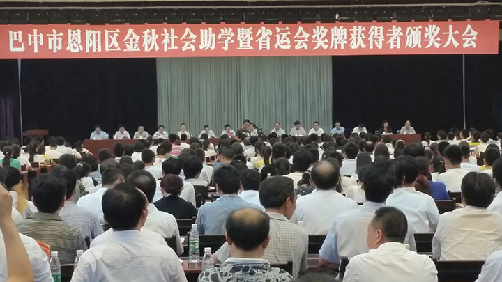 8月20日,巴中市恩陽區(qū)第二屆“金秋助學(xué)”活動在恩陽區(qū)委會議室順利舉行,恩陽區(qū)區(qū)委書記梁津華、區(qū)委副書記、區(qū)長王清平、副區(qū)長朱俊、區(qū)委常委、總工會主席張治國、開元集團(tuán)董事長趙思儉、恩陽中學(xué)、茶壩中學(xué)、相關(guān)企事業(yè)單位負(fù)責(zé)人、受助學(xué)生、家長及老師、巴中電視臺、巴中晚報等新聞媒體共計八百余人參加了此次助學(xué)活動。