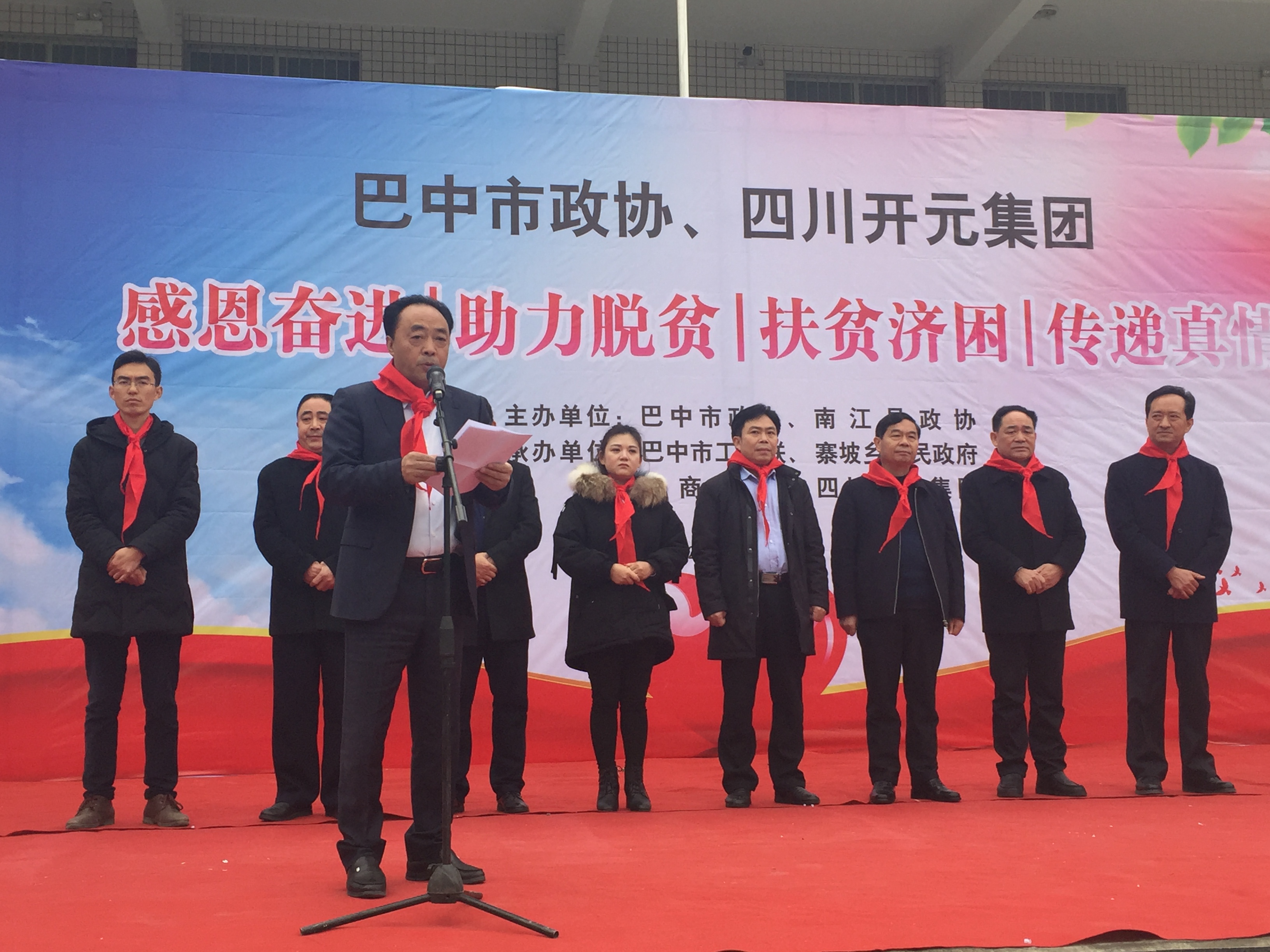 2月22日,在巴中市政協(xié)“創(chuàng)引幫”活動(dòng)的感召下,由市政協(xié)、四川開(kāi)元集團(tuán)主辦,市工商聯(lián)、南江縣委縣政府,南江縣政協(xié)、寨坡鄉(xiāng)黨委政府、巴商總會(huì)和四川南江光霧和谷旅游開(kāi)發(fā)公司協(xié)辦的寨坡鄉(xiāng)助學(xué)、助老、助殘活動(dòng)在寨坡小學(xué)隆重召開(kāi)。